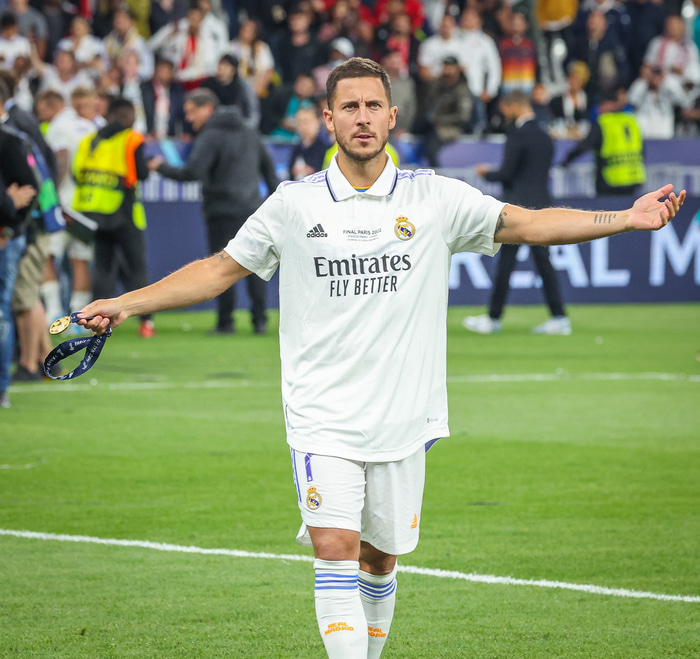 Eden Hazard leikmaður Real Madrid hefur ekki náð að sína sitt rétta andlit hjá félaginu síðan hann fór til Spánar frá Chelsea árið 2019.