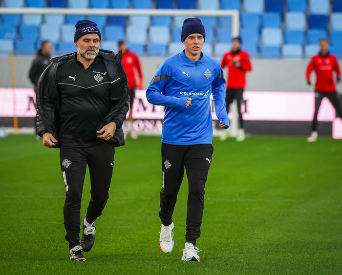 „Hákon verður ekki með í leiknum á morgun, vonandi verður hann í lagi gegn Portúgal en hann glímir við meiðslavandræði því miður og við verðum án hans á morgun."