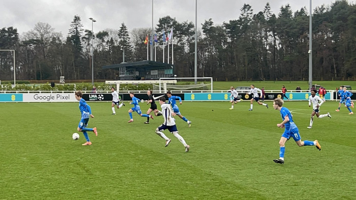 Ísland byrjaði leikinn vel og átti í fullu tré við stjörnum prýtt lið Englendinga. Strákarnir okkar lágu djúpt og beittu skyndisóknum af miklu krafti en þegar fyrri hálfleikur var hálfnaður var augljóst í hvað stefndi og framherji Arsenal U15, Jaden Maghoma, sá til þess að Englendingar fóru inn í hálfleikinn með þriggja marka forystu og Jaden með tvö mörk og stoðsendingu í fyrri hálfleik.