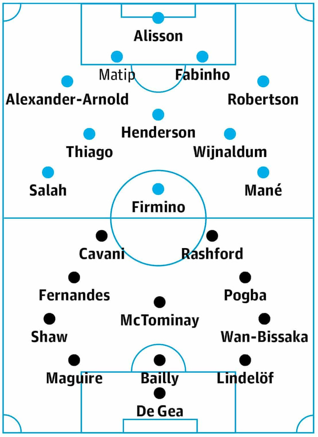 Jafnframt er talið að Ole Gunnar Solskjær byrji með þrjá hafsenta; Eric Bailly, Harry Maguire og Victor Lindelöf. Hann muni svo Scott McTominay á miðsvæðinu með Paul Pogba og Bruno Fernandes. Anthony Martial byrji ekki þennan leik.