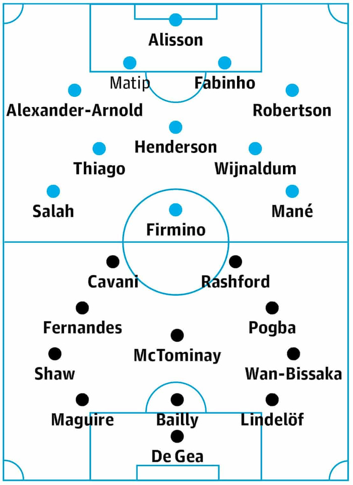 Hjá Liverpool eru Diogo Jota, Naby Keita, Kostas Tsimikas, Joe Gomez, og Virgil van Dijk allir á meiðslalistanum. Phil Jones er sá eini sem er á meiðslalistanum hjá Man Utd.
