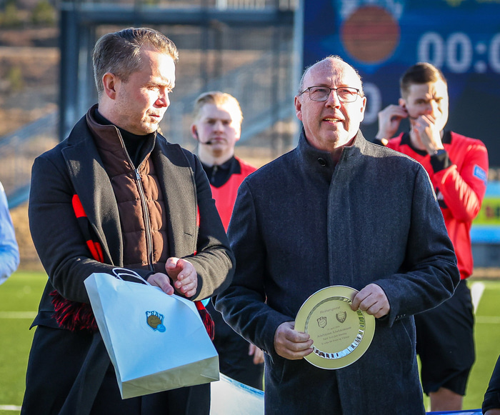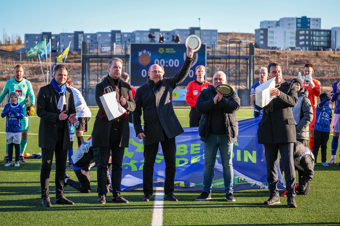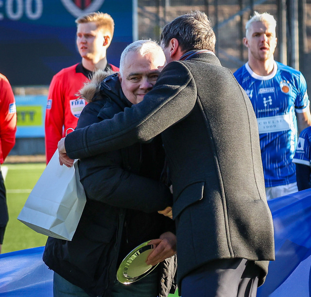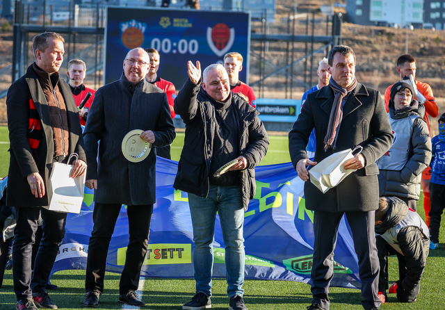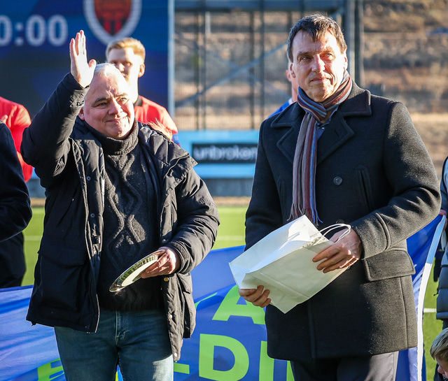 Það var skemmtileg stund fyrir leik Víkings og Fram í Bestu-deild karla í gærkvöldi þegar Framarar heiðruðu heiðursgesti leiksins, þá Aðalstein Aðalsteinsson og Guðmund Steinsson.