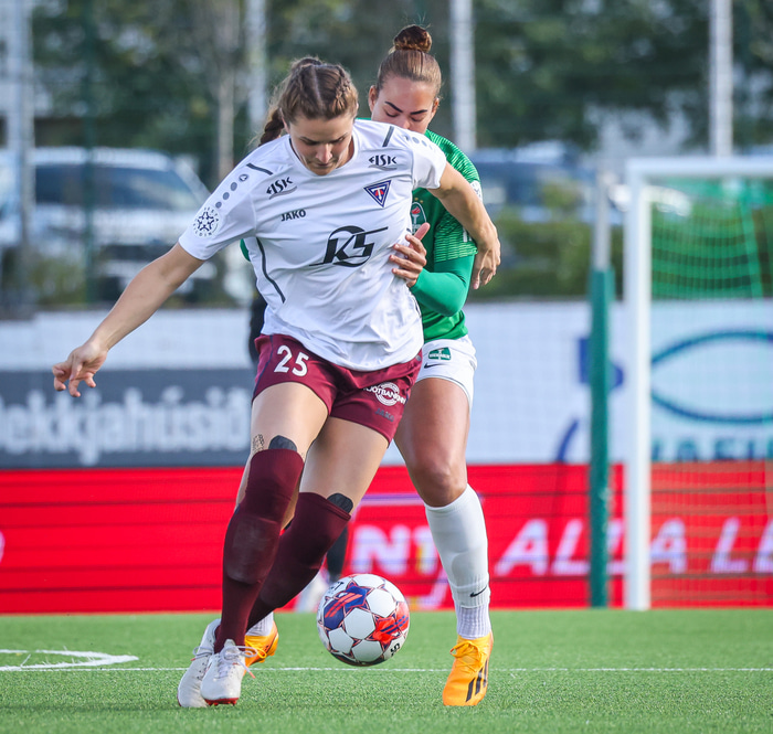 „Það er allt hægt. Við féllum úr Bestu deildinni og áttum ekki gott tímabil. Það gerist. Það er mótlæti og það er erfitt að ná öllum markmiðum strax. Við náðum markmiðinu að komast upp í 1. deild, við náðum að halda okkur þar og náðum svo markmiðinu að fara upp í efstu deild. En við náðum ekki að halda okkur uppi. Þetta er svo geggjaður hópur að maður sá það strax að það var engin að spá í að vera lengi í 1. deild. Við fórum strax upp og erum núna á leið inn í annað tímabilið í röð í efstu deild," segir Bryndís. „Við erum alltaf að bæta við markmiðum og erum að ná þeim jafnt og þétt. Stundum tekurðu eitt skref aftur á bak en þá þarftu bara að taka tvö skref fram á við."