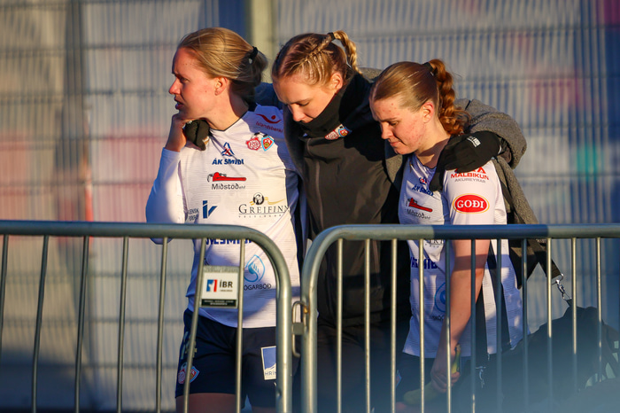 Þór/KA er í heimsókn hjá Víkingi. Eva Rut meiddist á hné eftir 25 mínútna leik og var greinilega sárþjáð. Hún var í kjölfarið borin af velli.