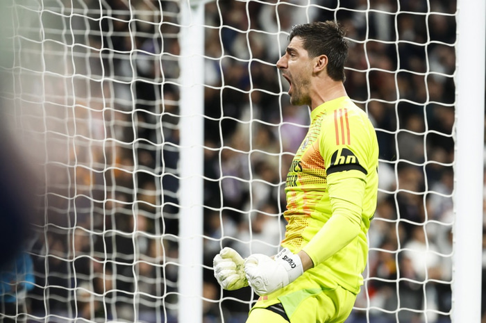 Bukayo Saka steig á punktinn og hefði getað farið langt með einvígið. Hann fór hins vegar illa að ráði sínu og vippaði boltanum til vinstri og Thibaut Courtois skutlaði sér í rétta átt og skoraði.