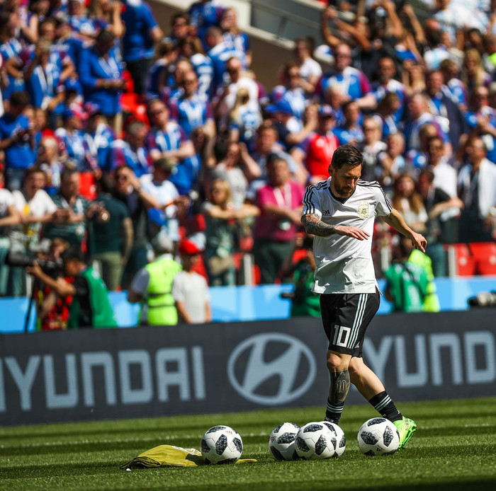 Lionel Messi var í góðri pössun hjá íslenska landsliðinu og fékk ekki rosalega mörg tækifæri í dag. Á 63. mínútu dró hins vegar til tíðinda þegar Aguero féll í teignum eftir viðskipti við Hörð Björgvin Magnússon. Dómarinn dæmdi víti og steig Lionel Messi á punktinn, einn besti fóboltamaður sögunnar ef ekki sá besti. Hannes Þór Halldórsson, leikstjórinn, til varnar. Og viti menn, Hannes varði vítið frá þessum magnaða fótboltamanni.