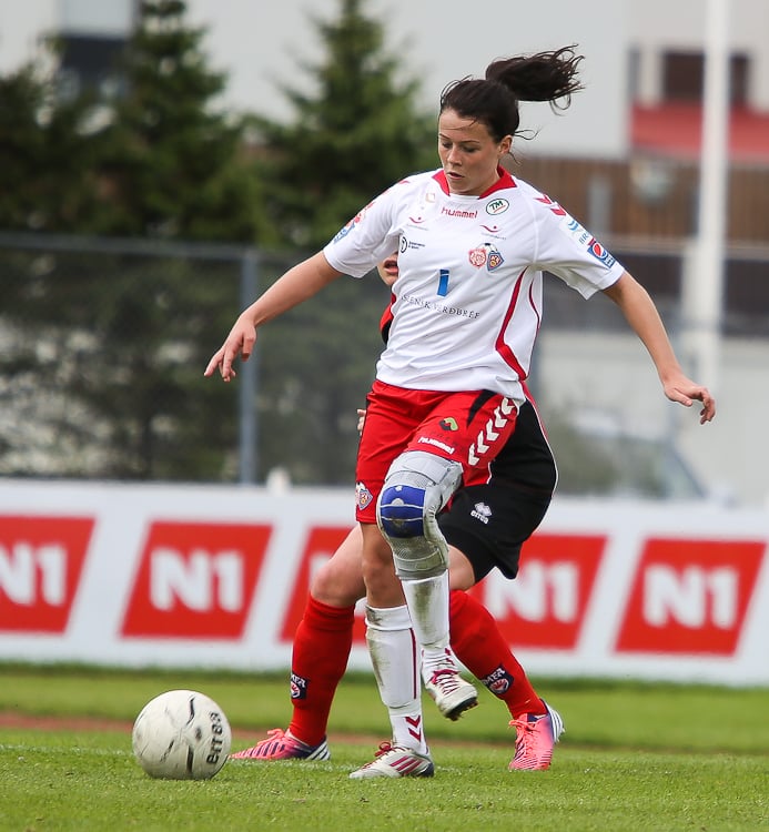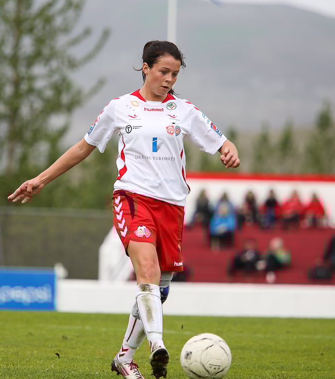 Sandra María Jessen sýnir á sér hina hliðina að þessu sinni en hún leikur með Þór/KA í Pepsi-deildinni.