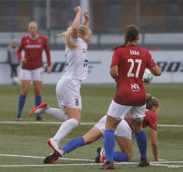 Valur og Fylkir mættust í Pepsi Max-deild kvenna í gær og urðu lokatölur 1-1 jafntefli. Valur lék frá 2. mínútu manni færri þar sem Elísa Viðarsdóttir fékk reisupassann strax í byrjun leiks.