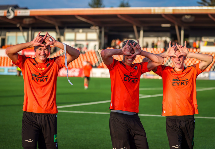 Nokkrir af ungu leikmönnum Fylkis léku það svo eftir í leikslok þegar sigrinum var fagnað.