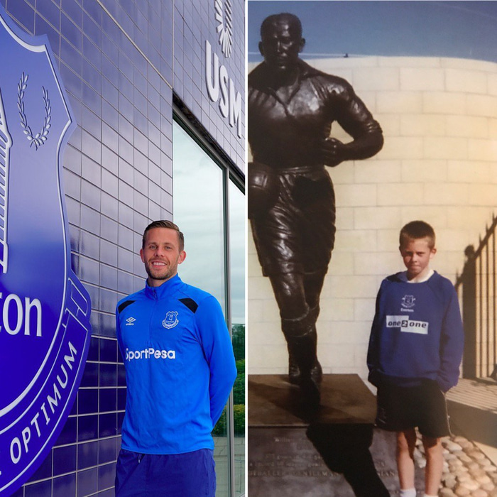 Gylfi þá og nú í Everton búningi