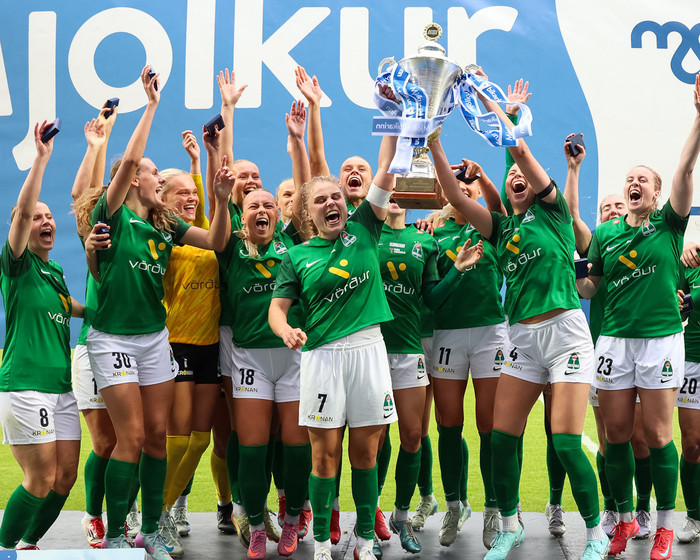 „Þetta er ótrúleg tilfinning, það er í rauninni ekkert í líkingu við að vinna bikarinn. Þetta er fáránlega skemmtilegt," sagði Berglind sem vann bikarinn einnig í fyrra en þá var hún í liði Vals. Hún kom inn af bekknum í úrslitaleiknum í fyrra og tók þátt í 2-1 sigri gegn Blikum.