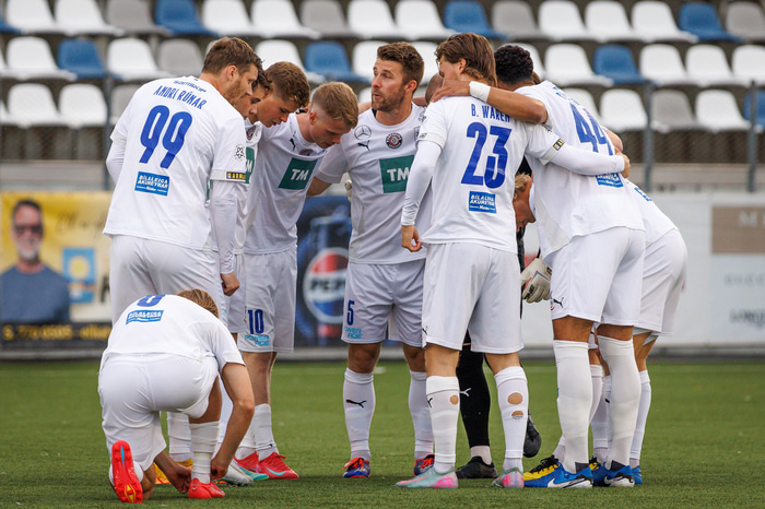„Ef við höldum að við þurfum að gera eitthvað minna, leggja minna á okkur en á móti Víkingi, þá munum við lenda í vandræðum. Ef við verðum tilbúnir í að leggja inn sömu vinnu, sýna sömu ákefð og hugrekki, þá getum við tekið eitthvað út úr þessum leik og haldið áfram að horfa upp á við," segir Jökull.