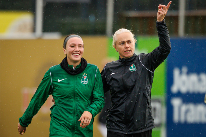 „Ég var akkúrat búin að vera að æfa þessa tegund af slútti með Nik þjálfara og það er frábært að sjá það skila sér strax í svona mikilvægum leik. Ég á það til að flækja hlutina í svona stöðum í staðinn fyrir að leggja boltann bara í netið.