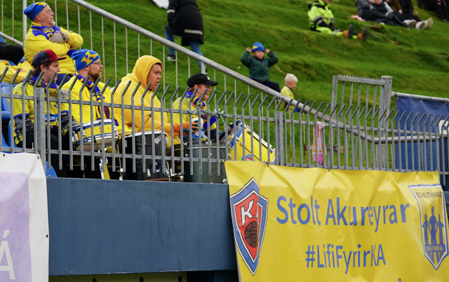 KA og HK gerðu 1 - 1 jafntefli í Pepsi Max-deild karla í gær. Hér að neðan er myndaveisla úr leiknum.
