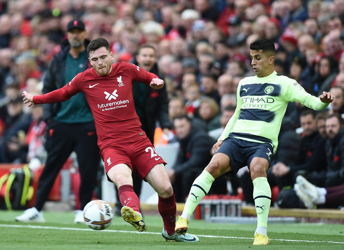 Roy Keane, sparkspekingur á Sky Sports, segir varnarleik Joao Cancelo í marki Liverpool átakanlegan og að hann hafi hreinlega varist eins og skólastrákur.