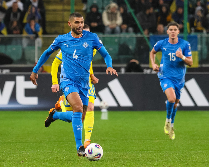 Guðlaugur Victor var svo nálægt því að skora fyrsta mark leiksins en markvörður Úkraínu varðo ótrúleg.