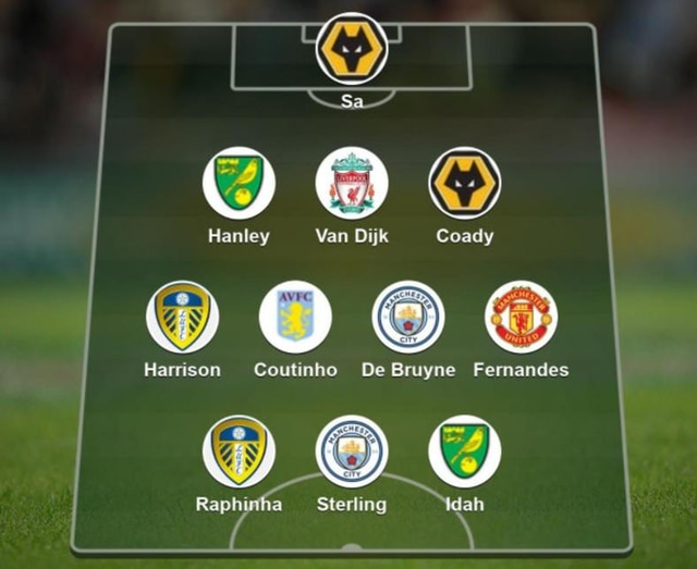 Miðjumaður: Bruno Fernandes (Manchester United) - Skoraði bæði mörk United um helgina, það seinna var virkilega fallegt.