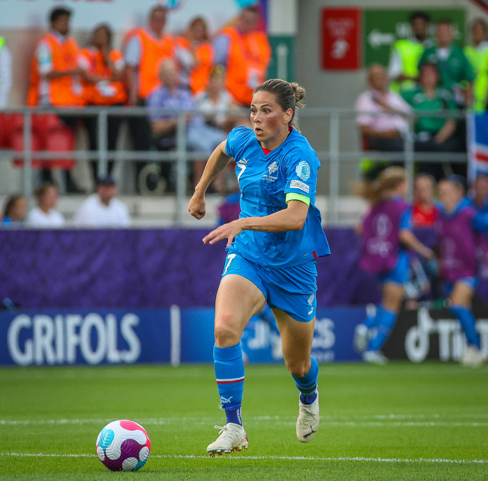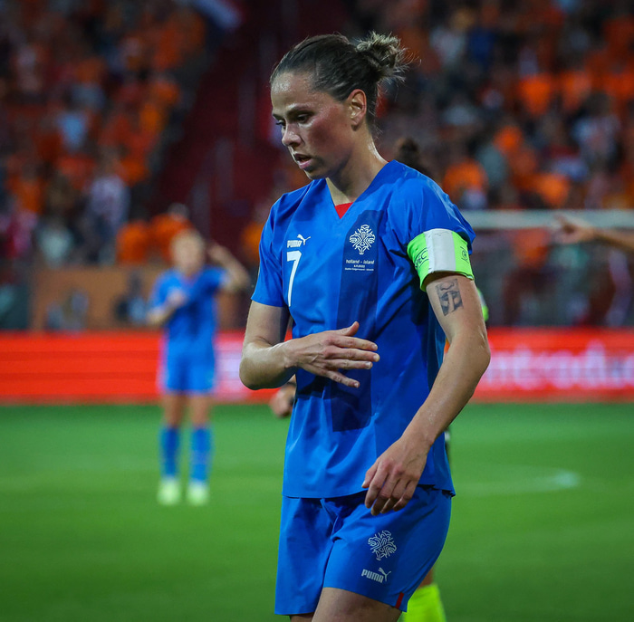 „Á ákveðnum tímapunkti þegar ég var ólétt þá kom það upp að ég myndi breyta til. Það er eitthvað sem ég mun ræða seinna, ástæðuna. Þetta var ekki alveg það sem hentaði mér og minni fjölskyldu," sagði Sara Björk Gunnarsdóttir, fyrrum landsliðsfyrirliði, í hlaðvarpi á Fótbolta.net fyrir EM síðasta sumar.