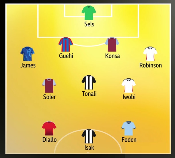 Sóknarmaður: Alexander Isak (Newcastle) - Enn og aftur í liðinu enda hefur hann verið í einu orði sagt stórkostlegur. Tvö mörk og stoðsending gegn Úlfunum. Einn besti, ef ekki besti, sóknarmaðir jarðkringlunnar um þessar mundir.