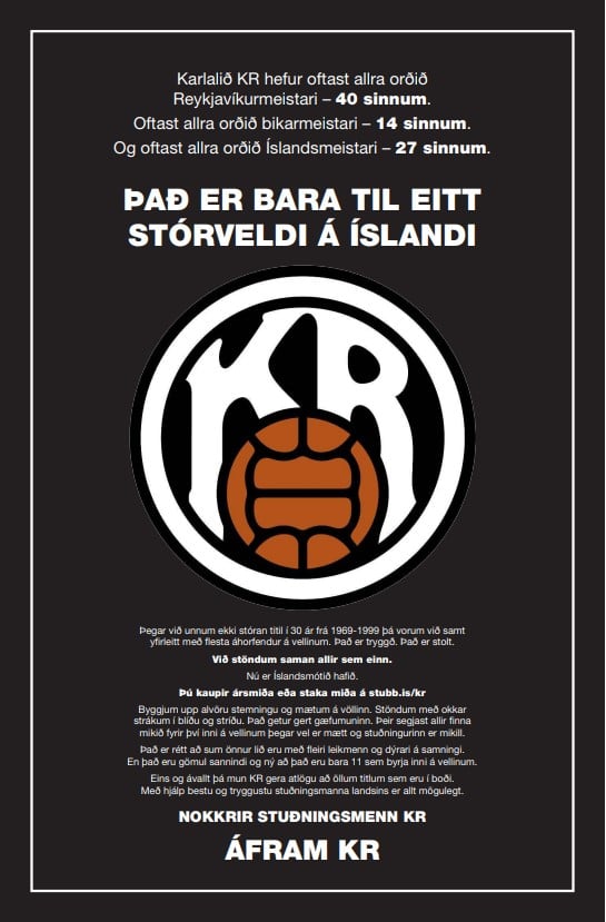 „Nokkrir stuðningsmenn KR" eru stílaðir fyrir heilsíðu auglýsingu í Morgunblaðinu í dag.