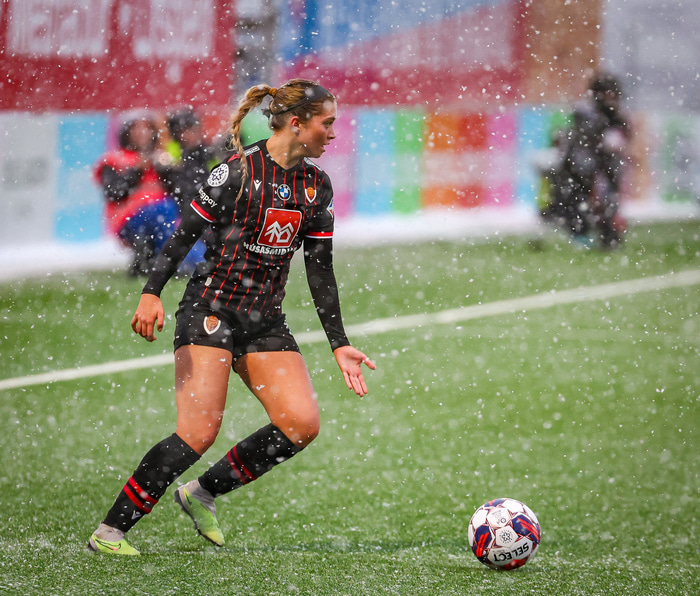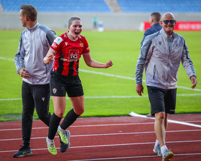 Birta Birgisdóttir er miðjumaður sem hefur komið víða við þrátt fyrir ungan aldur. Hún byrjaði í Þrótti, fór í Breiðablik, spilaði með Augnablik, Gróttu og Haukum áður en hún fór í háskólabolta í Bandaríkjunum í stuttan tíma en hún fann svo sinn stað í fyrra þegar hún gekk í raðir Víkings. Birta skoraði af vítapunktinum í gær þegar Víkingar unnu sigur á Íslandsmeisturum Vals í Meistarakeppni KSÍ og hún fagnaði því vel og skemmtilega. Tíminn hjá Víkingi hefur svolítið snúist um það einmitt, að fagna vel.
