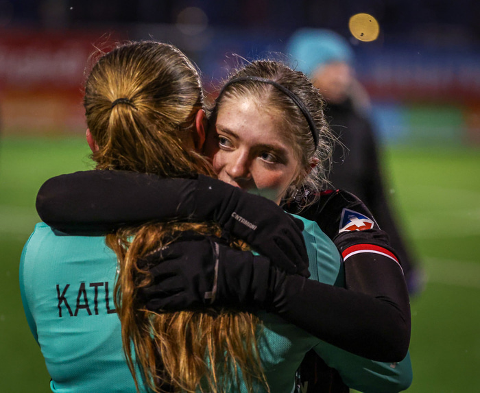 „Ég er með mjög mikið keppnisskap og ég er stundum pirruð heima ef ég tapa á æfingum. Ef við erum ekki að standa okkur, þá lætur maður stelpurnar heyra það. Sömuleiðis er ég að peppa þær líka. Það eru engar vondar tilfinningar eftir æfingar eða leiki ef einhver er að drulla yfir mig. Við erum allar vinkonur."