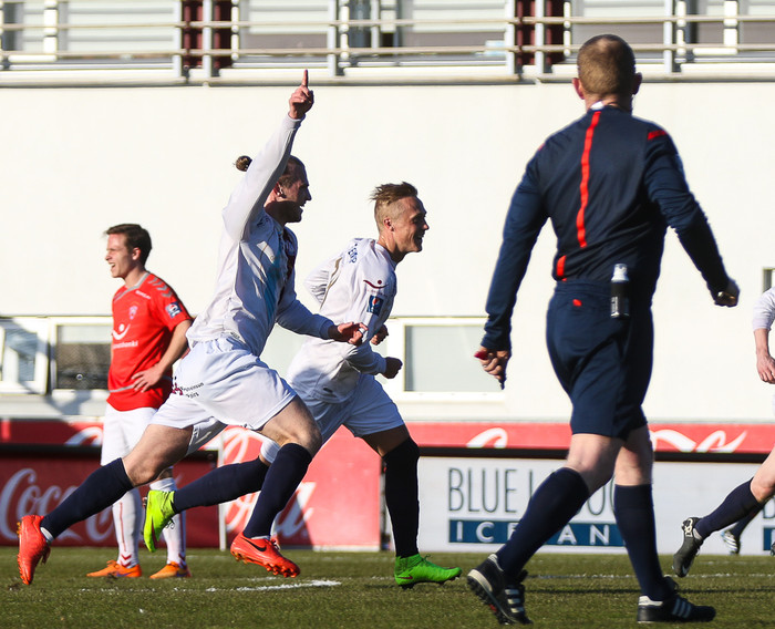 „Við skoruðum tvö lögleg mörk í þessum leik. Mér fannst við vera með þetta. Línuvörðurinn flaggaði brot á markvörðinn þeirra. Þeir hafa svo gaman að því. Þetta var mjög random en pælum ekki í því."