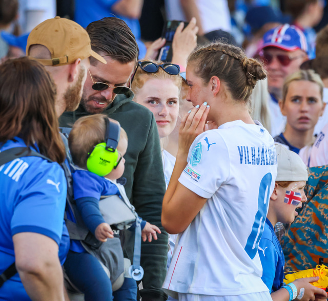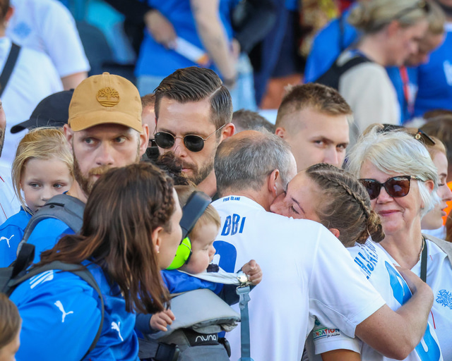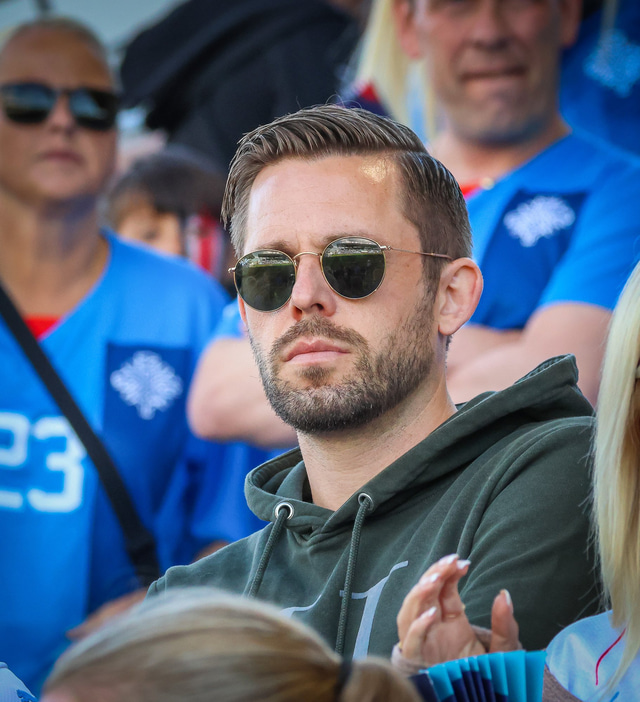 Gylfi sást í fyrsta sinn opinberlega frá handtöku sinni á leik Íslands og Ítalíu á Evrópumótinu á dögunum. Þar sá hann frænku sína, Karólínu Leu Vilhjálmsdóttur, skora fyrir Íslands hönd.