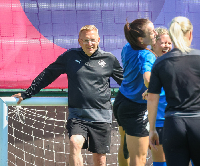 Á fréttamannafundi fyrir leik Íslands á morgun sátu þau Þorsteinn Halldórsson, landsliðsþjálfari, og Glódís Perla Viggósdóttir sem er varafyrirliði liðsins. Þau voru spurð hvort að og hvernig fylgst yrði með stöðu mála í hinum leik riðilsins.