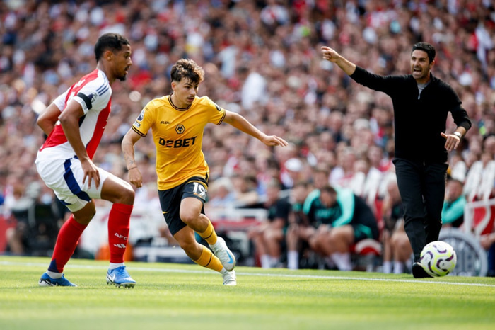 Saliba átti flotta byrjun á tímabilinu. Kai Havertz og Bukayo Saka skoruðu mörkin á meðan Saliba hélt sóknarmönnum Úlfanna í skefjum.
