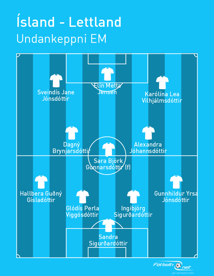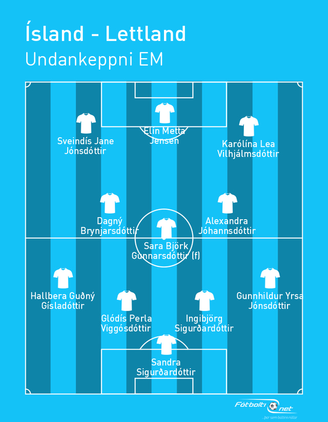 Sveindís Jane Jónsdóttir, leikmaður Breiðabliks er í byrjunarliðinu og leikur sinn fyrsta landsleik. Liðsfélagar hennar Alexandra Jóhannsdóttir og Karólína Lea Vilhjálmsdóttir eru einnig í byrjunarliðinu, en þetta er einnig fyrstu leikur Karólínu í byrjunarliði.