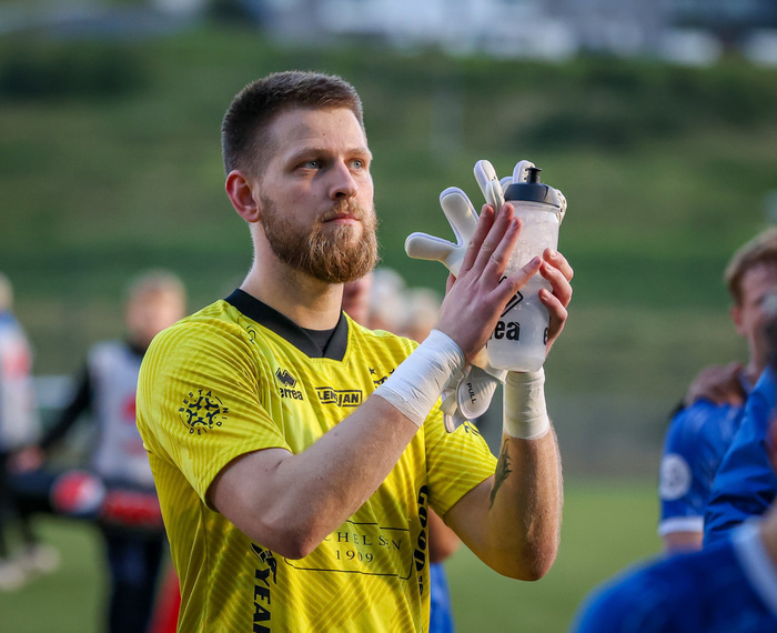 „Þetta er smávægileg tognun í innra læri. Hann gat ekki sparkað í bolta eftir að hafa meiðst á æfingu í fyrradag. Stefán kom í markið og hann gerði mjög vel."