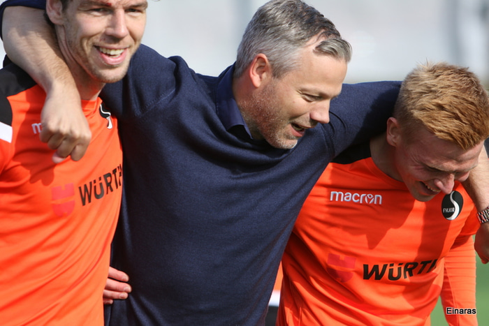 „Ég ætla bara að halda því fyrir mig, ekki vera að gefa öðrum eitthvað," sagði Helgi og hló. „Ég tel mig nokkurn veginn vita hvað það er, ætla ekki að opinbera það neitt sérstaklega. Það er ekkert hókus pókus í því, snýst allt um að vera með góðan hóp leikmanna sem eru tilbúnir í að fara í þá vinnu sem til þarf til að ná settu markmiði. Þetta er erfið deild til að ná árangri í, liðin eru vel þjálfuð, menn eru 'fit' og þú þarft að hafa þig allan við til að komast upp úr þessari deild. Það eru alltaf að lágmarki 4-5 lið sem gera tilkall til þess að fara upp, þú verður að halda einbeitingu yfir allt sumarið svo það megi ganga upp. Ég ætla ekki að fara nánar út í þetta, reyni að halda því svolítið fyrir mig og vonandi gengur þetta áfram."