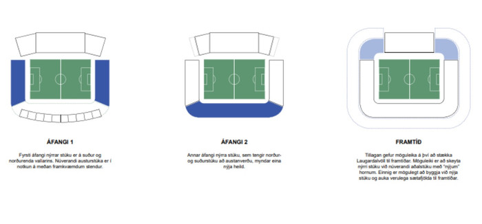 Á ársþingi KSÍ í vor voru kynnt áform um endurbættar stúkur á Laugardalsvelli. Áætlað er að byrja að reisa stúkur fyrir aftan mörkin báðu megin. Síðan verði austurstúkan (oft kölluð Sýnarstúkan) rifin og ný stúka sem tengist stúkunum fyrir aftan mörkin verði byggð.