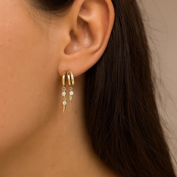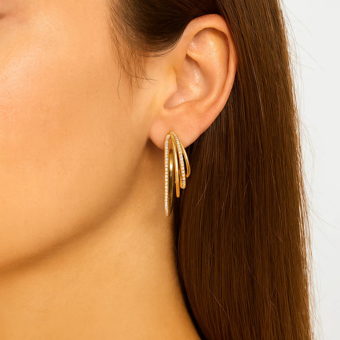 Alexandra eyrnalokkarnir eru glæsilegir og áberandi án þess að vera þungir. Lagskipt formið og zirkonia steinarnir skapa fallega hreyfingu og ljóma sem grípur augað. Þetta er skartgripur fyrir þær sem vilja eitthvað meira en klassíska eyrnalokka en samt stílhreint og fágað.