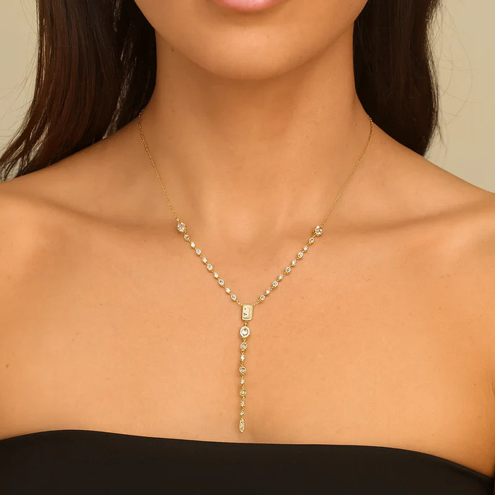 Luciana hálsmenið er eitt vinsælasta stykkið í Astoría línunni, og ekki að ástæðulausu. Fín keðja með glitrandi steinum og dropaformi sem fellur fallega að hálsmálinu. Þetta er hálsmen sem virkar eitt og sér en líka fullkomið til að para við önnur skartstykki.