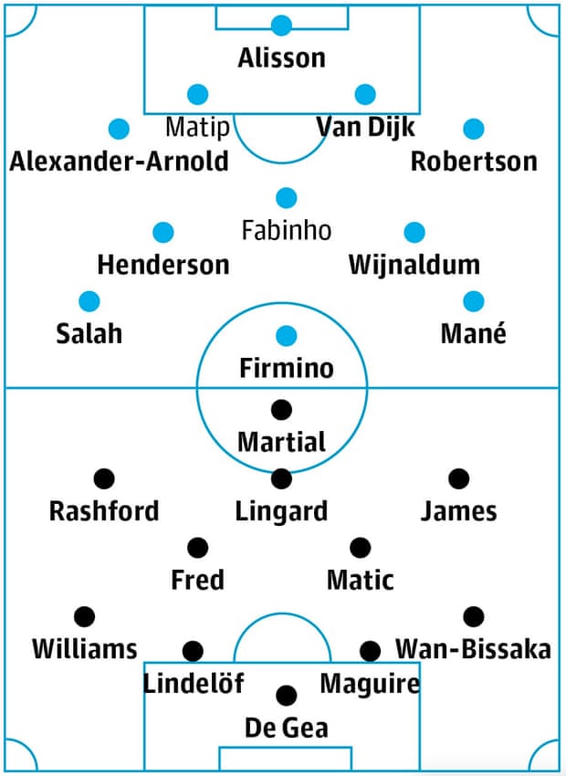 Guardian stillir upp líklegum byrjunarliðum þessara liða og býst við að hinir tæpu Joel Matip og Fabinho verði í byrjunarliði Liverpool. Þá er spáð því að ungstirnið Mason Greenwood byrji á bekknum.