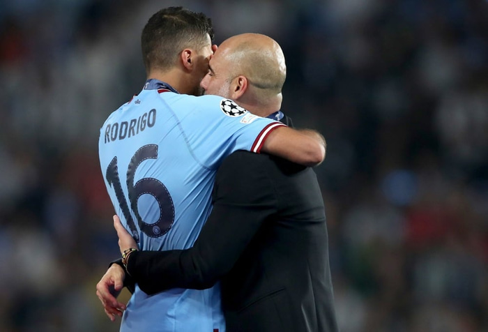 Spænsku fréttamennirnir vildu heyra skoðun Guardiola á rauða spjaldinu sem Jude Bellingham fékk fyrir að sýna dómara leiks Real Madrid gegn Osasuna vanvirðignu með orðum sínum.