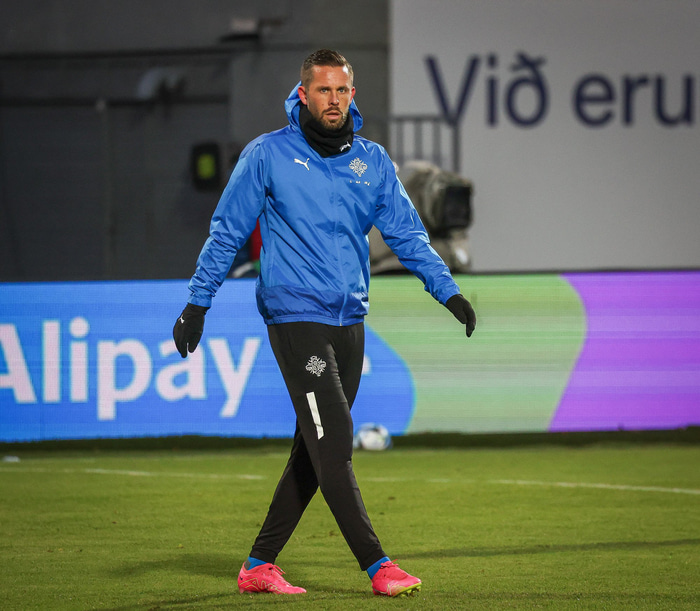 „Hann hefur komið hrikalega vel inn hjá okkur og passar vel inn í þennan hóp. Hann er búinn að spila með ansi mörgum leikmönnum sem eru í þessu liði, bæði í A-landsliðinu og svo í yngri landsliðum líka. Hann þekkir ansi marga og smellpassar inn í hópinn. Hann hefur komið gríðarlega vel inn en mér fannst leikmennirnir vera hrikalega spenntir að fá hann inn."