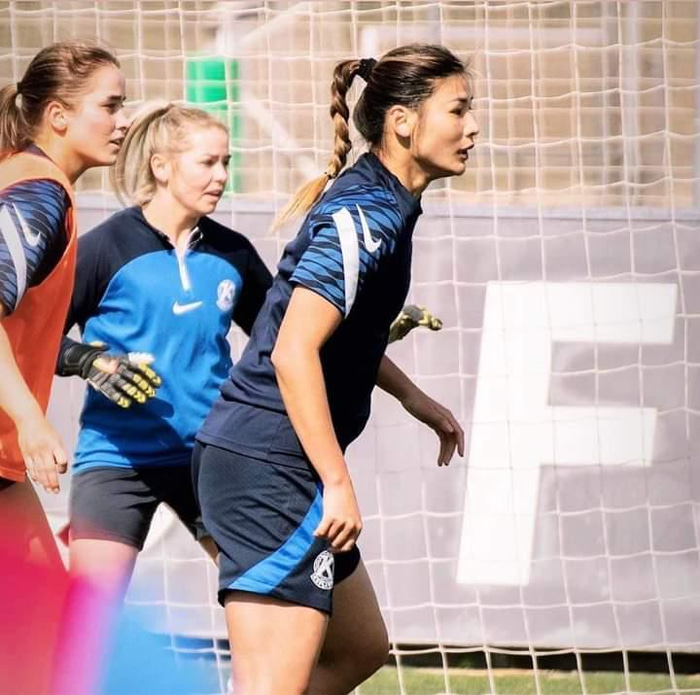 „Það er öðruvísi að spila íþróttir í Kína. Við æfum eins og atvinnufólk frá unga aldri og það er erfitt að finna tímann fyrir skóla. Við ferðumst í mismunandi borgir til að æfa og stundum ferðumst við til annarra landa til að æfa og keppa. Frá mánudegi til laugardags æfum við eiginlega alltaf tvisvar á dag og tvo klukkutíma í senn. Ég var mjög upptekin við fótboltann þegar ég var yngri og fékk nánast engan tíma fyrir sjálfa mig. En þetta var skemmtileg reynsla."