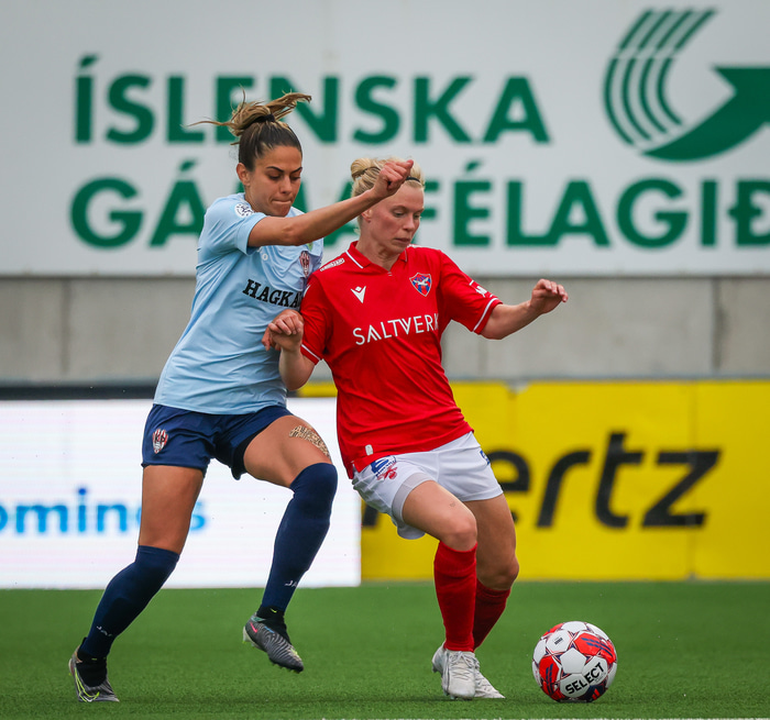 „Sumarið 2022 fékk ég svo skilaboð frá Halla sem var að þjálfa ÍH í Hafnarfirði. Hann spurði mig hvort ég vildi koma og klára sumarið með þeim. Það voru stelpur í liðinu sem ég hafði spilað með og þekkti. Þannig að ég hugsaði: 'Af hverju ekki?' Það var sumar og ég var í fríi frá skóla og vinnu. Ég var með frítíma og við æfðum bara einu sinni eða tvisvar í viku. Eftir að ég byrjaði aftur þá fann ég ánægjuna við fótboltann á ný og vildi fljótlega fá hærra tempó. Ég spurði því Nik (Chamberlain, þáverandi þjálfara Þróttar) hvort ég mætti æfa með þeim. Ég æfði með liðinu og endaði á að skrifa undir samning á ný í Laugardalnum."
