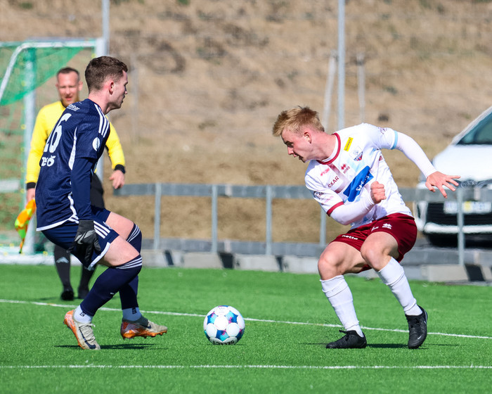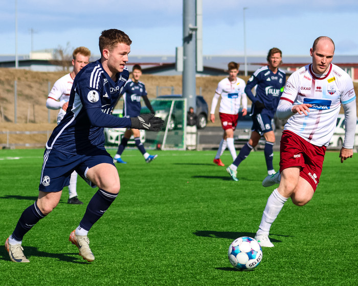 Í Reykjanesbæ skoraði Gabríel Aron Sævarsson eina mark leiksins er Keflavík sló Leikni úr bikarnum. Haukur Gunnarsson var með myndavélina á leiknum.