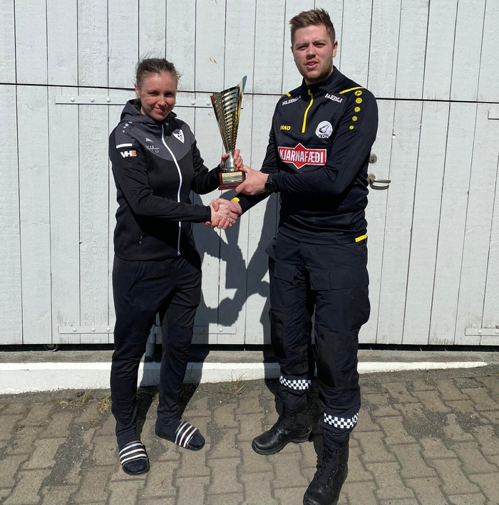 Á meðfylgjandi mynd má sjá dómarann Guðgeir Einarsson afhenda Steinunni Lilju Jóhannesdóttur verðlaunagripinn sem í boði var fyrir það lið sem vann mótið.