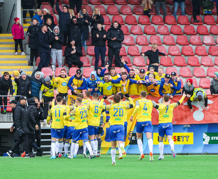„Það var í raun og veru ekkert annað í stöðunni fyrir mig en að skjóta. Mér fannst hann (Frederik Schram) vera framarlega en menn segja að hann hafi ekki verið það framarlega. Boltinn fór inn, hann var lengi að því. Þriðja markið var mikilvægt," segir Óskar.