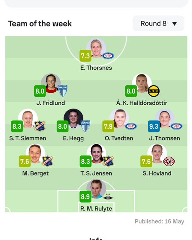 Ásdís gekk til liðs við félagið frá Val í vetur. Hún hefur staðið sig gríðarlega vel hjá norska liðinu en hún er á topp tíu að mati Sofascore í fyrstu umferðunum með tæplega 7.5 í meðaleinkunn.