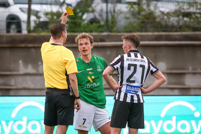 Af hverju geta leikmenn verið komnir með fimm gul spjöld áður en þeir taka út leikbann fyrir sitt fjórða gula spjald? Það gerðist á dögunum að Guðmundur Baldvin Nökkvason, leikmaður Stjörnunnar, fékk að líta sitt fjórða og svo fimmta gula spjald áður en aganefndin kom saman og úrskurðaði hann í bann. Guðmundur fékk sitt fjórða gula spjald gegn Fram á miðvikudegi, fimmta gula spjald gegn Víkingi á sunnudegi og tók svo út leikbann í gær þegar Stjarnan mætti Vestra, ellefu dögum eftir spjaldið gegn Fram.
