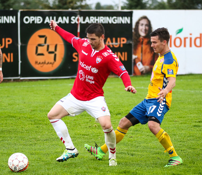 Kristinn Freyr er einu marki frá Garðari Gunnlaugssyni í baráttunni um markakóngstitilinn. Í leik Vals og Stjörnunnar fyrr í sumar skoraði Stjarnan sjálfsmark sem Kristinn sóttist eftir að fá skráð á sig. KSÍ endaði á því að skrá það sem sjálfsmark.
