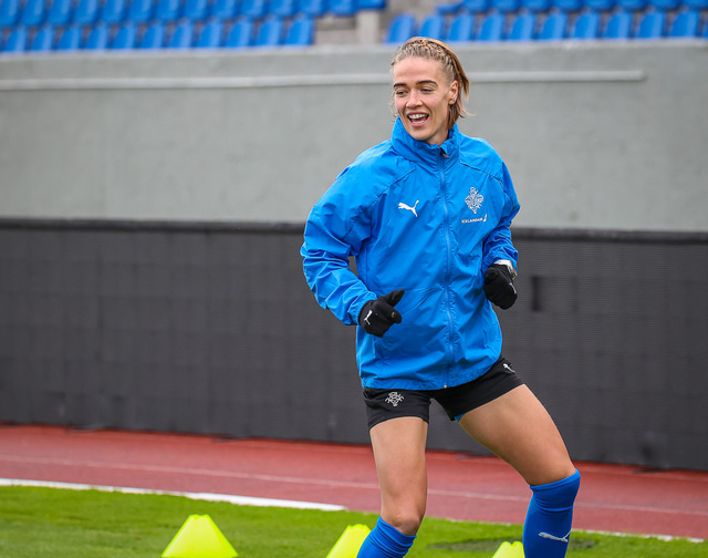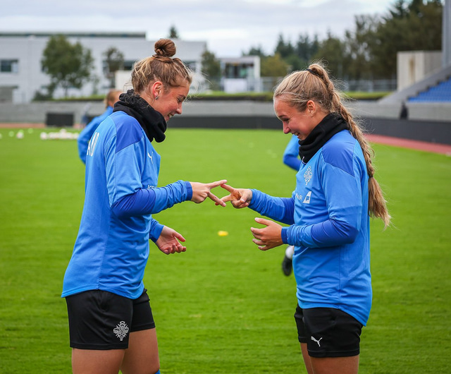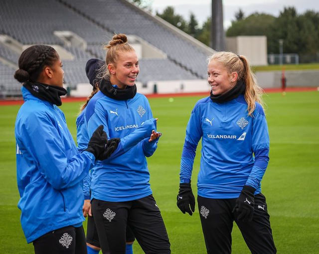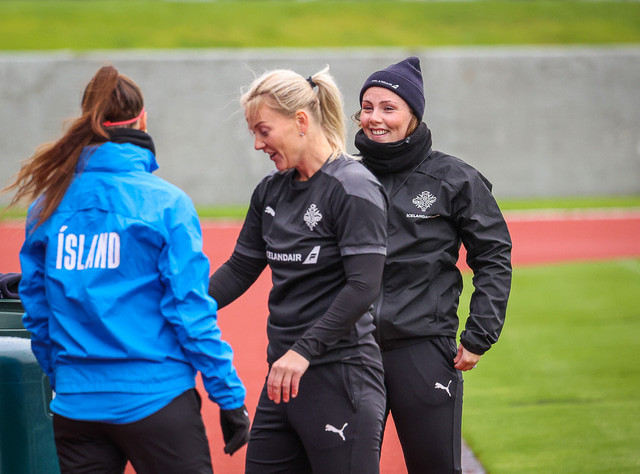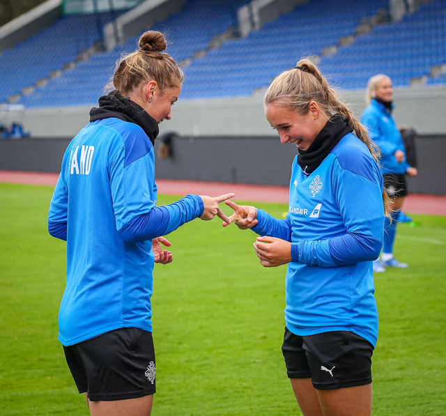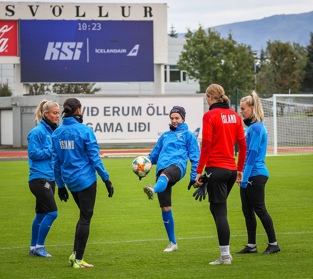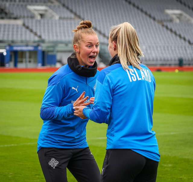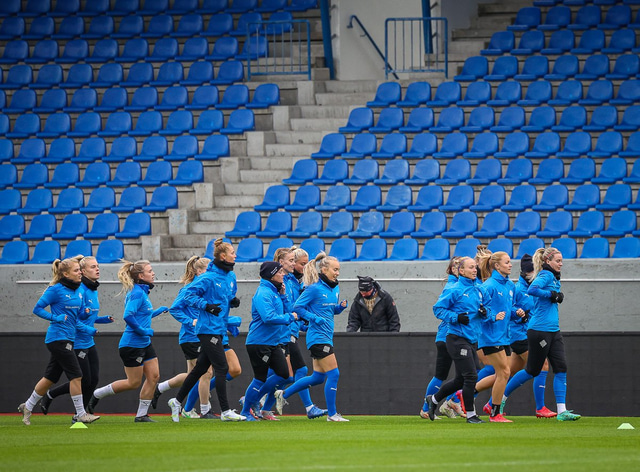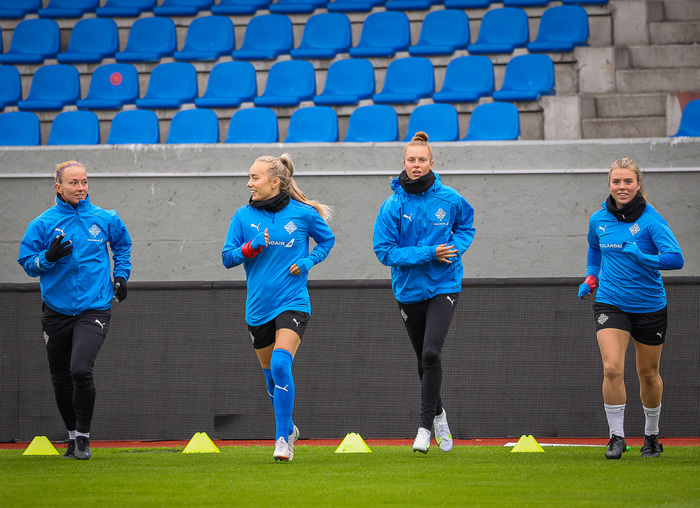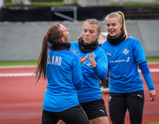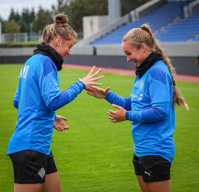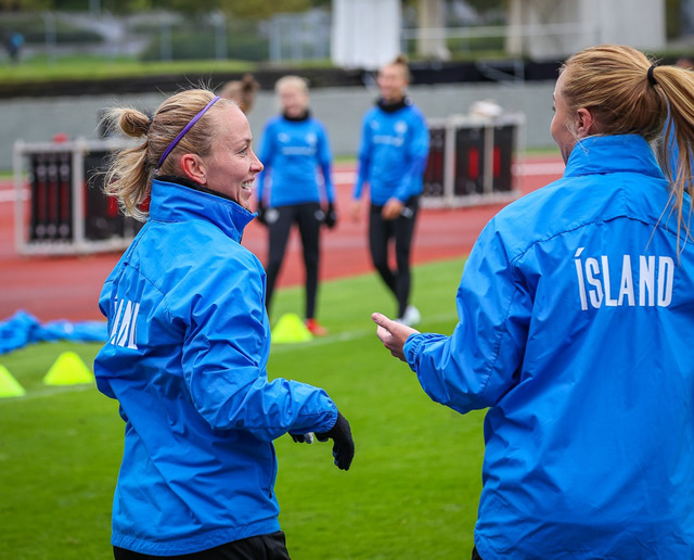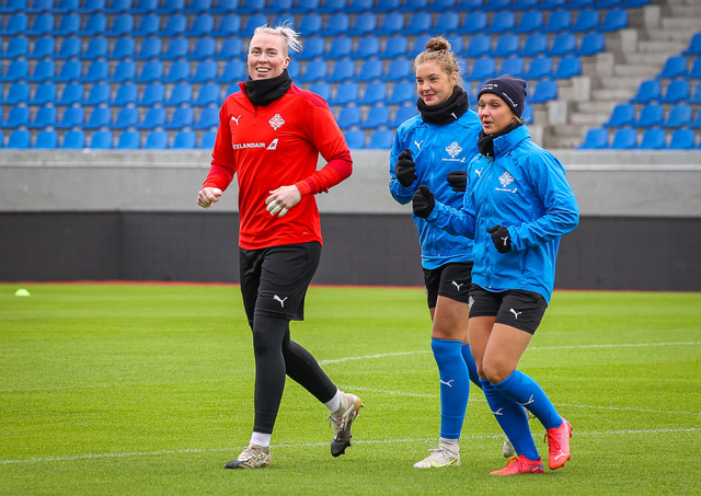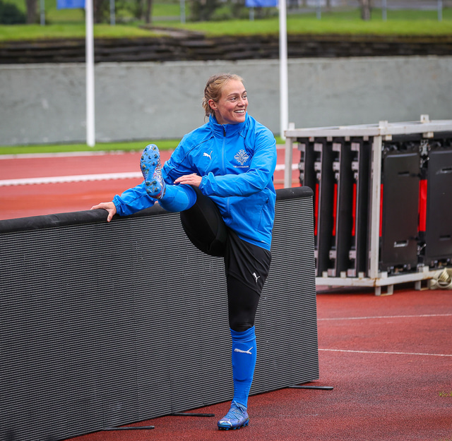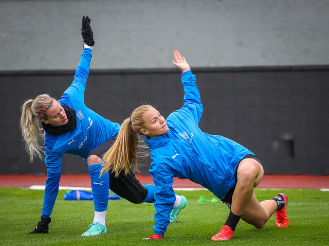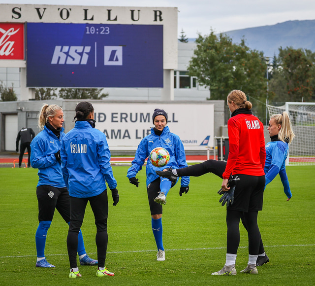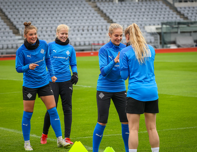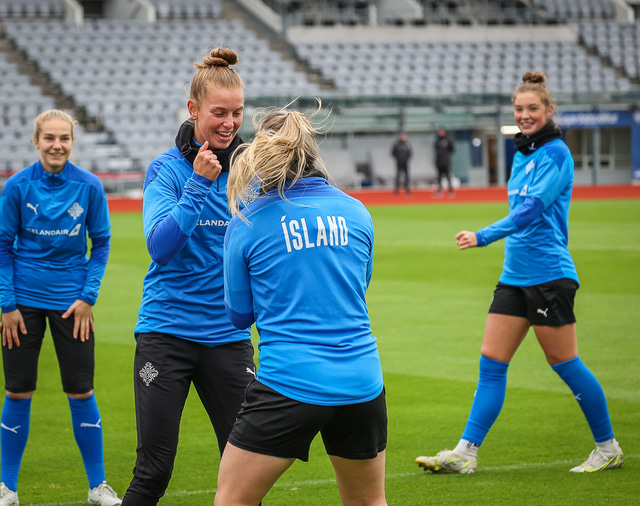 Kvennalandsliðið undirbýr sig nú af kappi fyrir stórleikinn við Hollandi í undankeppni HM 2023 sem fer fram á Laugardalsvelli á þriðjudagskvöldið. Stelpurnar æfðu í morgun í Laugardalnum og hér að neðan má sjá myndir af æfingunni þar sem mikið fjör var í steinn, skæri, blað.
