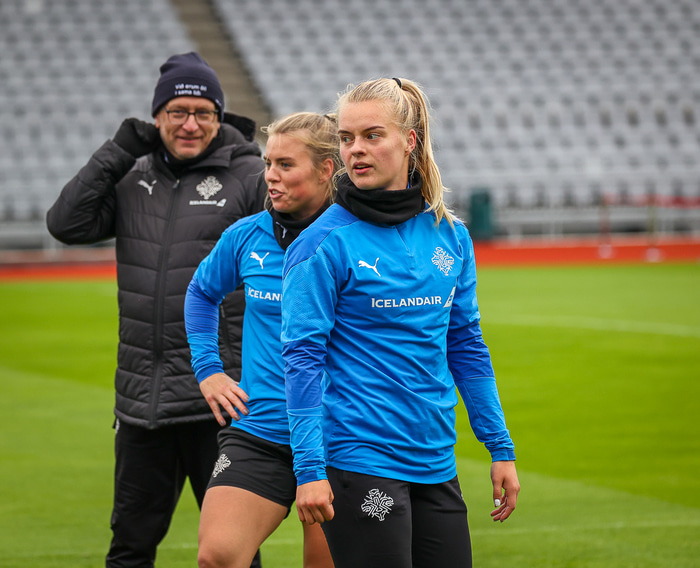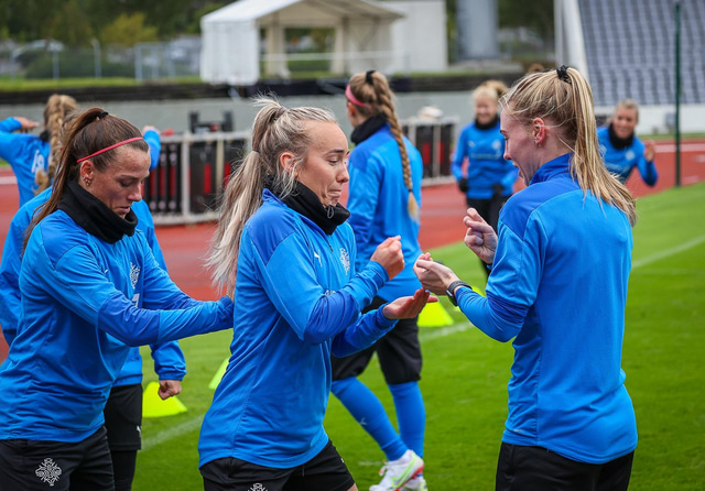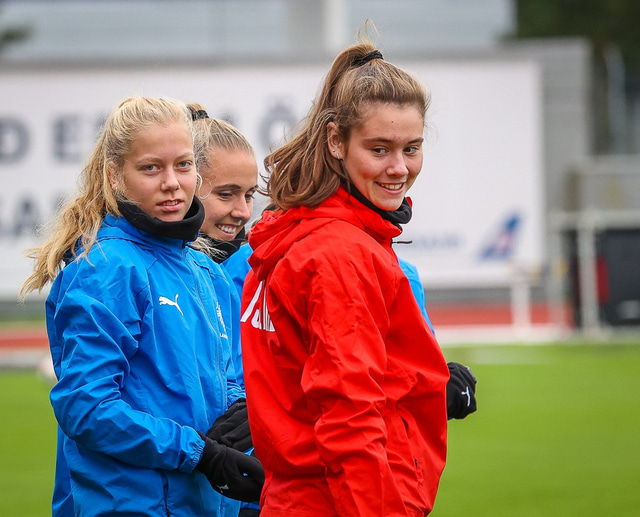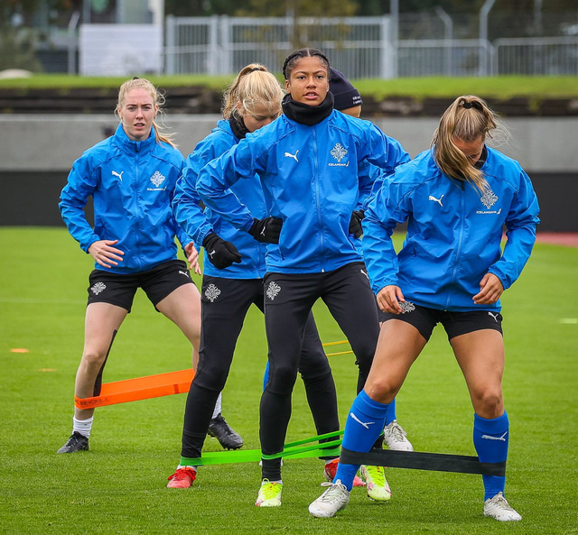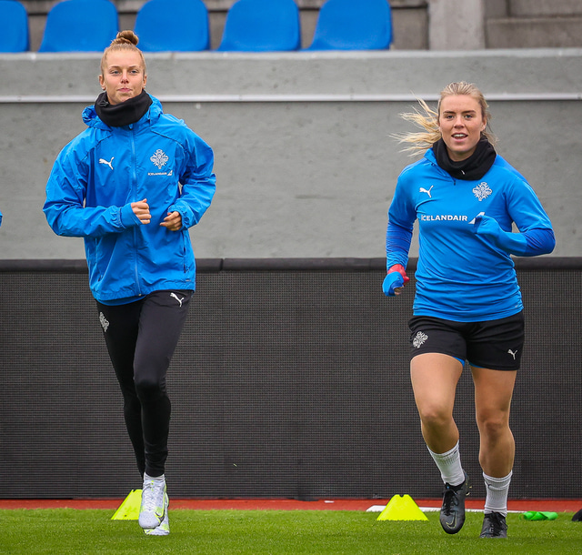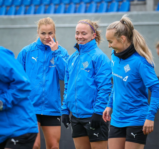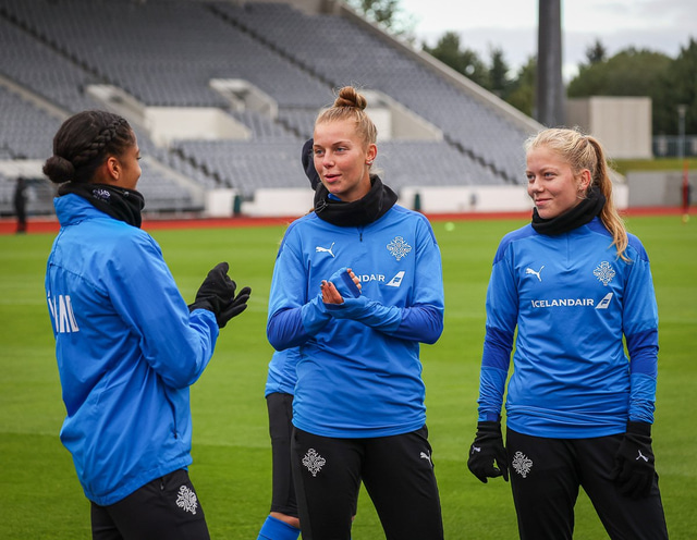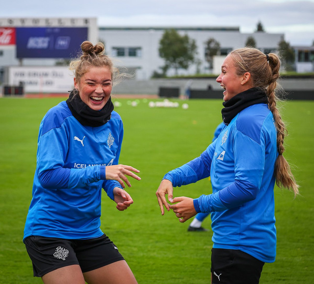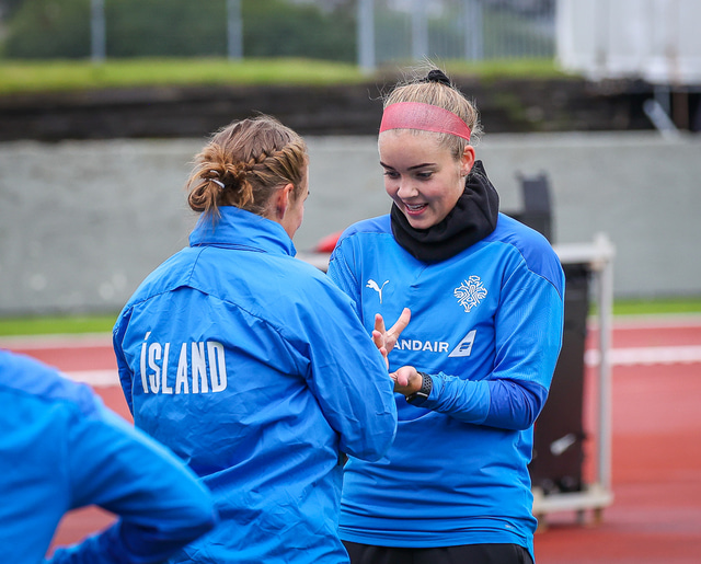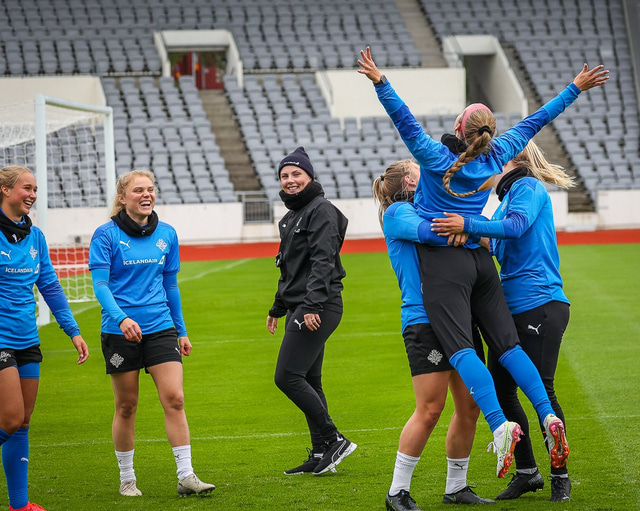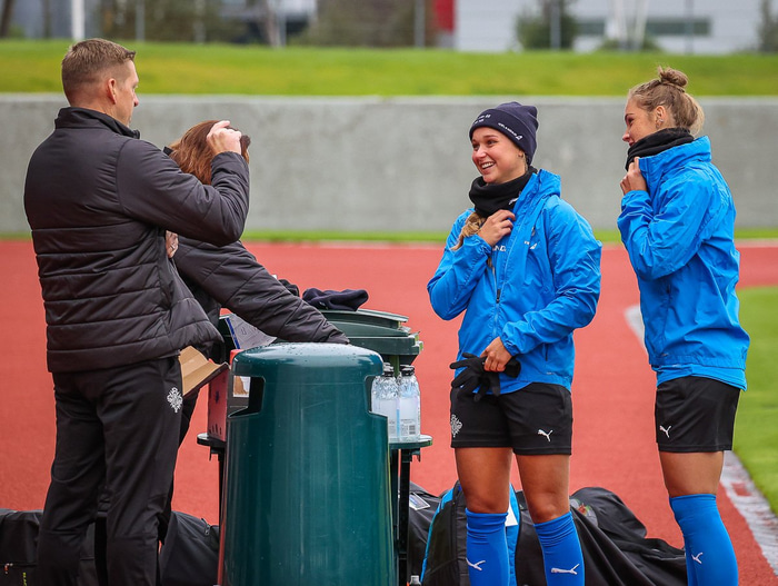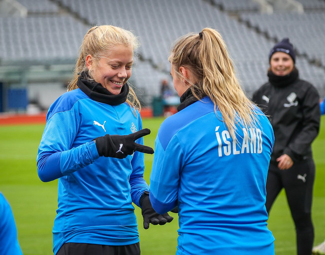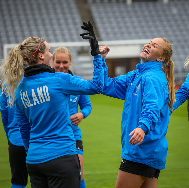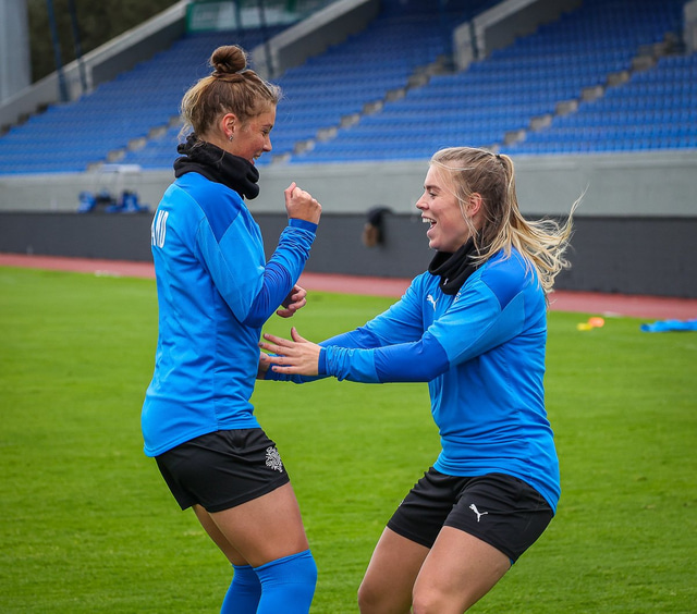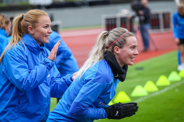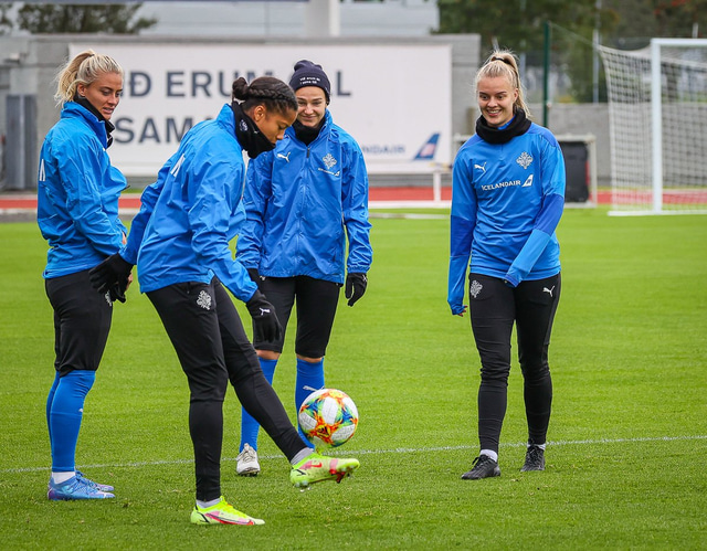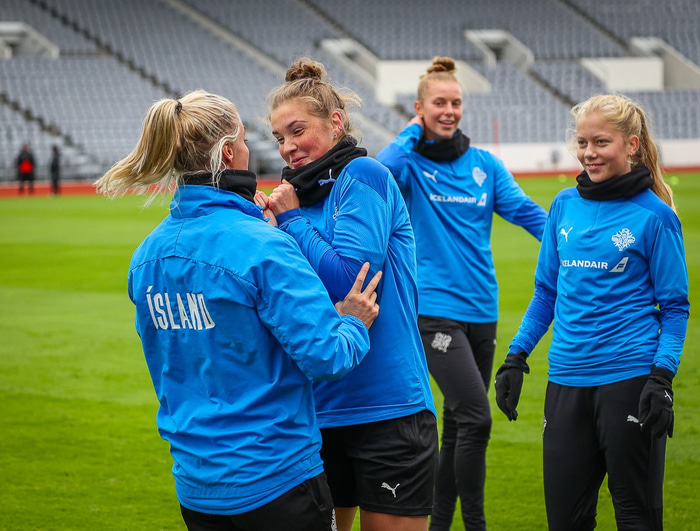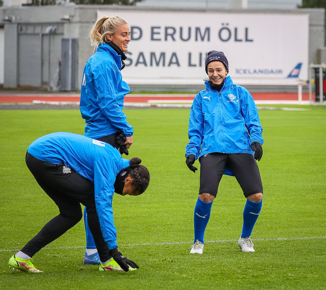 Kvennalandsliðið undirbýr sig nú af kappi fyrir stórleikinn við Hollandi í undankeppni HM 2023 sem fer fram á Laugardalsvelli á þriðjudagskvöldið. Stelpurnar æfðu í morgun í Laugardalnum og hér að neðan má sjá myndir af æfingunni þar sem mikið fjör var í steinn, skæri, blað.