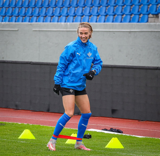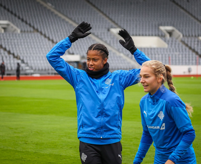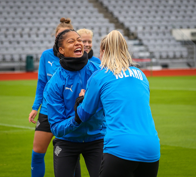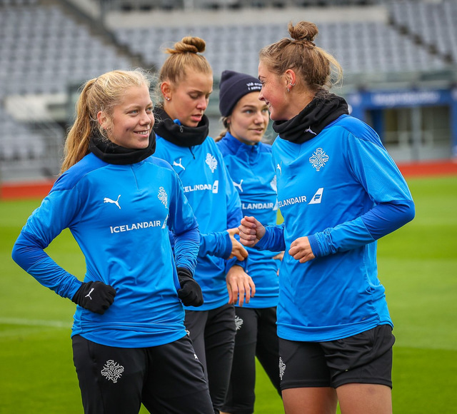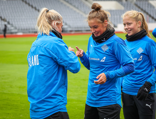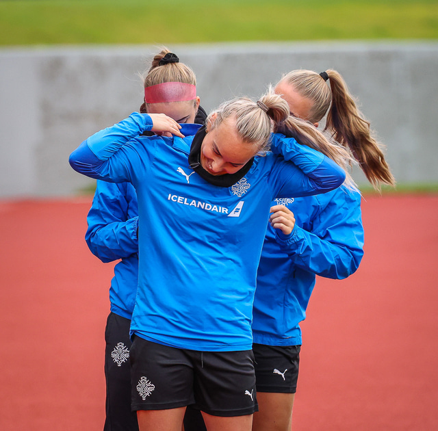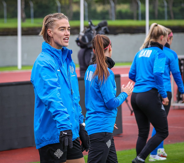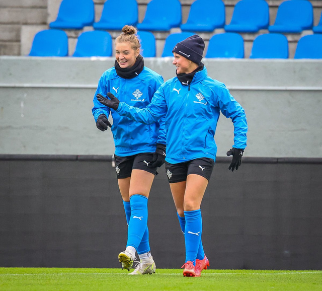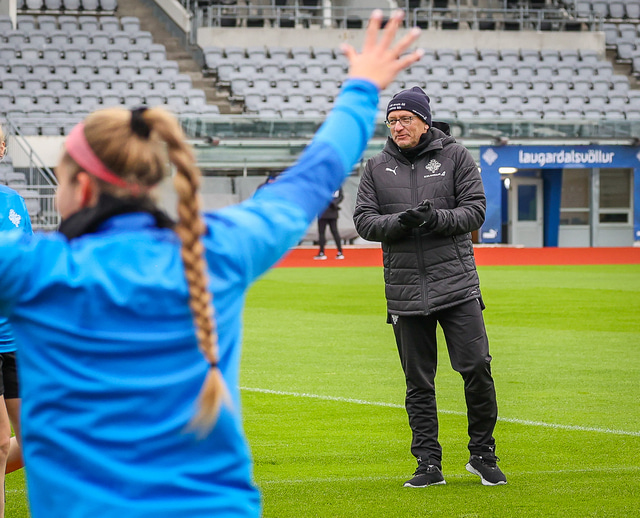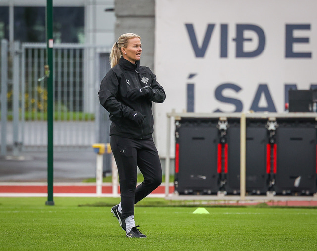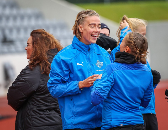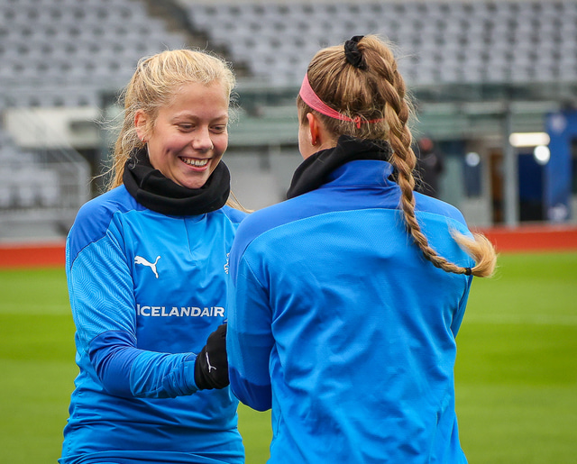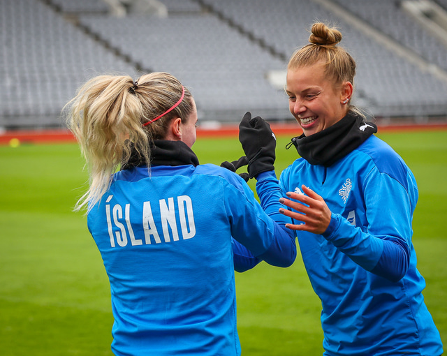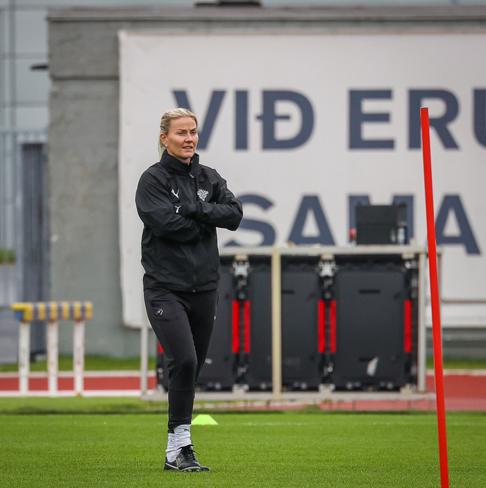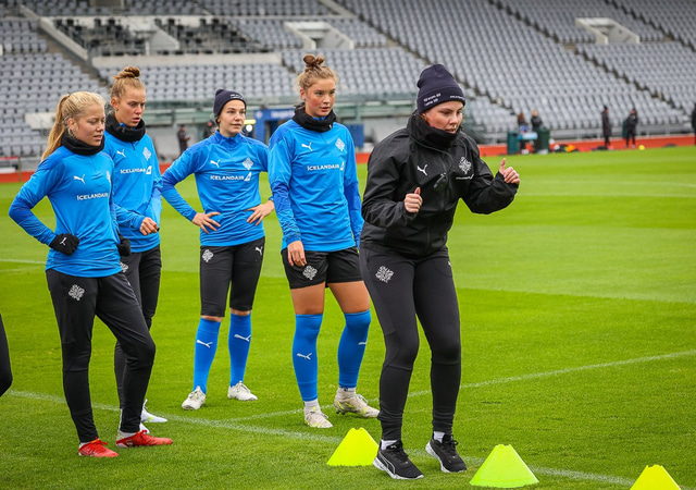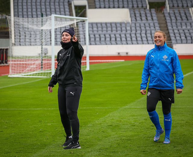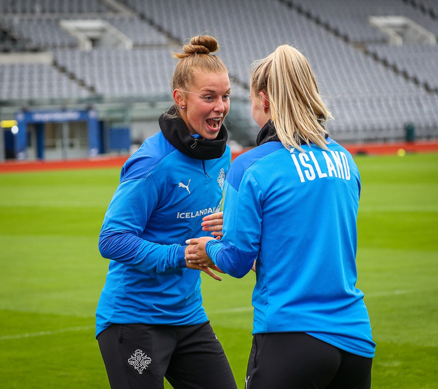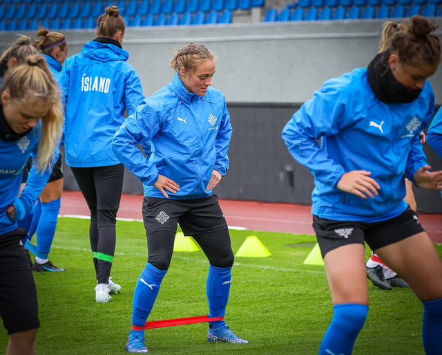 Kvennalandsliðið undirbýr sig nú af kappi fyrir stórleikinn við Hollandi í undankeppni HM 2023 sem fer fram á Laugardalsvelli á þriðjudagskvöldið. Stelpurnar æfðu í morgun í Laugardalnum og hér að neðan má sjá myndir af æfingunni þar sem mikið fjör var í steinn, skæri, blað.